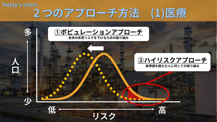 もちろん、現在では2つのアプローチを政府も医療も使い分けながら疾病予防は運用されて、大きな効果を上げております。